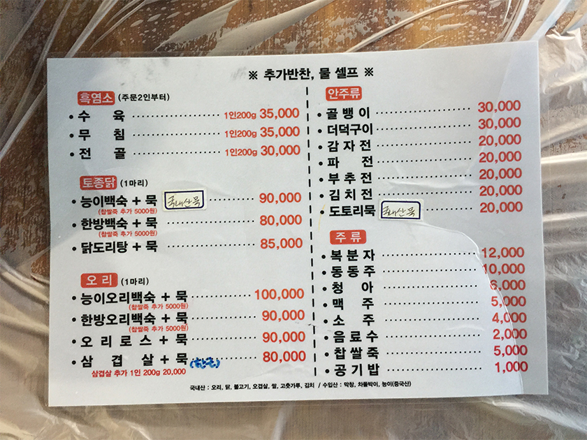 이것이 진짜 메뉴판....물도 안가져다 주는 서비스인데 저가격이다. 뭐 음식이 잘 나오면 이해할 수 있는 가격일 수도 있다.