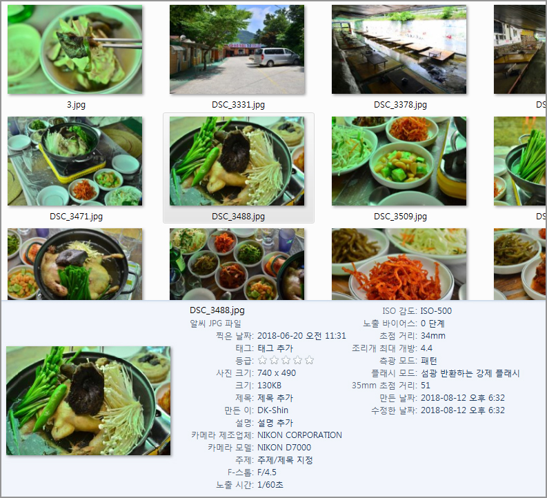 윈도우즈의 기본기능으로도 디지털사진파일들의 메타정보를 보여준다.
