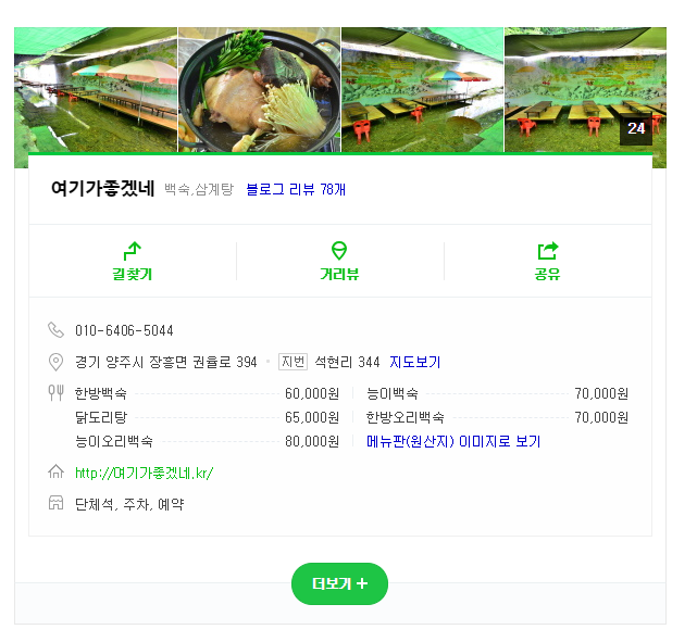 "장흥유원지"로 검색을 하고 정렬을 최신순으로 하니....쫘~~~악 나온다. 식당이름 "여기가좋겠네"