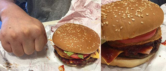 이번 주엔 버거킹 방문 몇 일 전에 맥도날드를 갔었다. 너무 쪼그라든 빅맥이 할인판매를 하고 있었지만 언제나 먹는 조합인 "베이컨 토마도 디럭스 + 맥스파이시 상하이 버거"로 먹었었다.