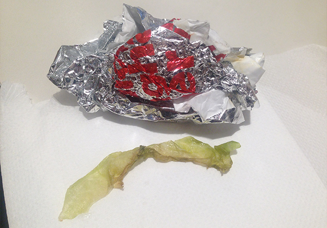 먹다가 하나 삐져나온 양상추 조각이 상태가 좋지않았다.