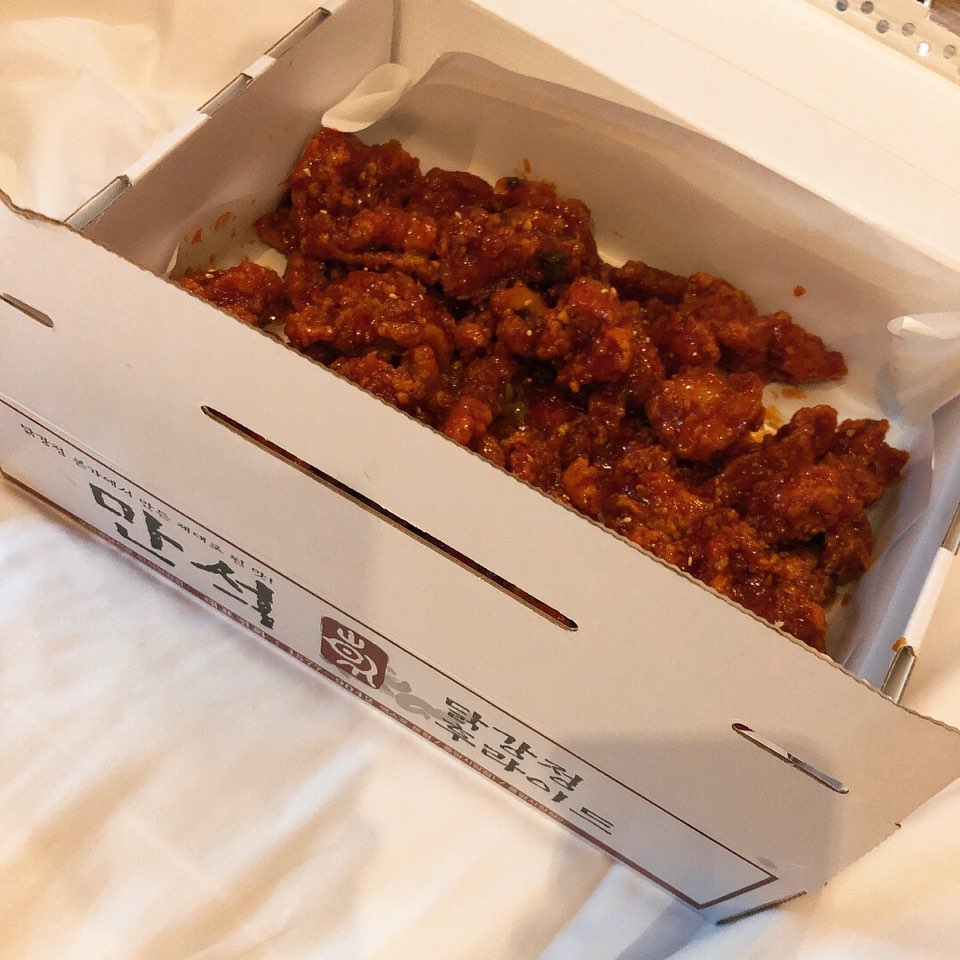 더운 날씨에 돌아다니다가 숙소로 와서 먹은 닭강정 맛은 정말이지 꿀맛!
