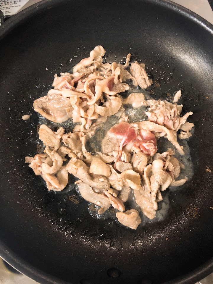 오리고기의 자체 기름이 있기 때문에, 기름은 아주 조금만 둘러주세요. 그렇다고 너무 안 두르면 팬에 눌러 붙을 수 있으니까요!