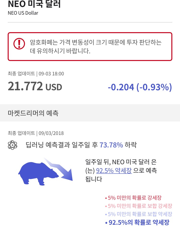 73, 74% 떡락 실화냐.... 이 어플말대로라면 네오와 모네로 가지신 분들은 빤스런을 하셔야겠습니다...