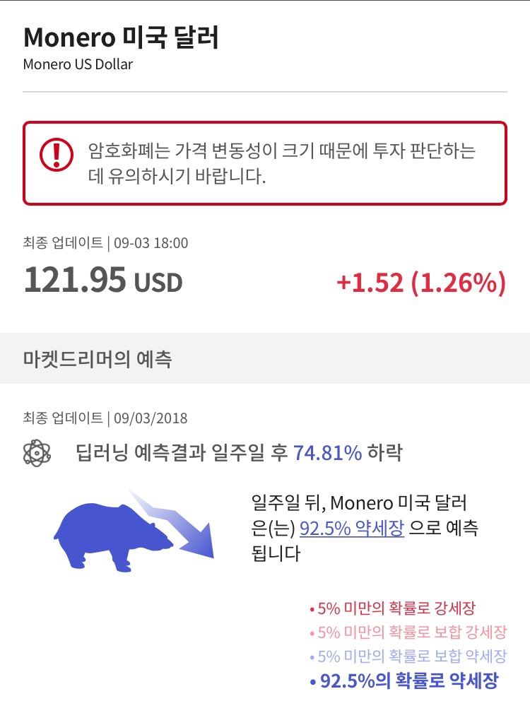 인공지능으로 시세예측이라니...! 신기하네요. 근데 일주일만에 모네로 73%하락...ㅇ_ㅇ 과연 일주일뒤에 어떻게 되있을까요..
