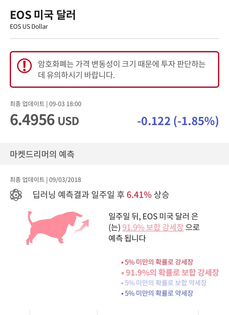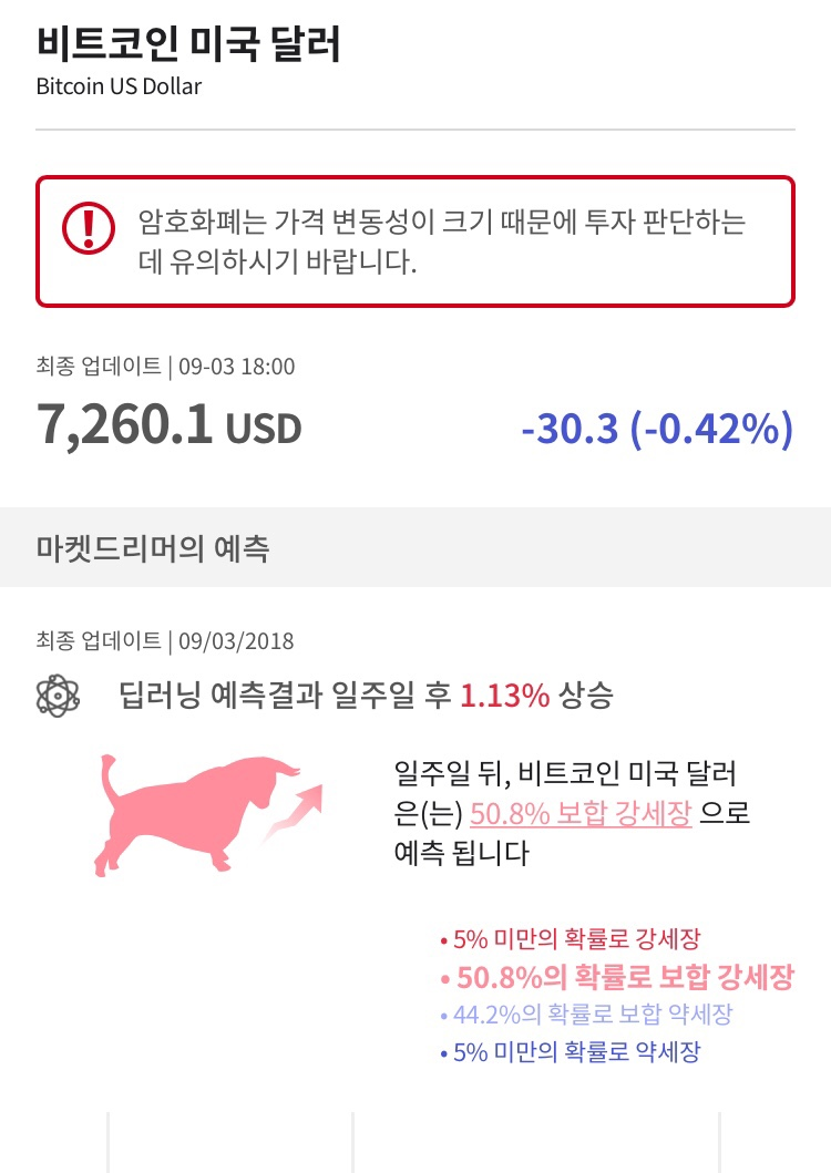 이 어플은 마켓드리머라는 딥러닝 알고리즘 엔진을 이용하여 암호화폐 및 주식, 환율, 금, 석유와 같이 변동하는 가격을 예측해주는 어플입니다. 간단하게 어플의 캡처사진을 통해 어떤 어플인지 설명을 드려볼게요.