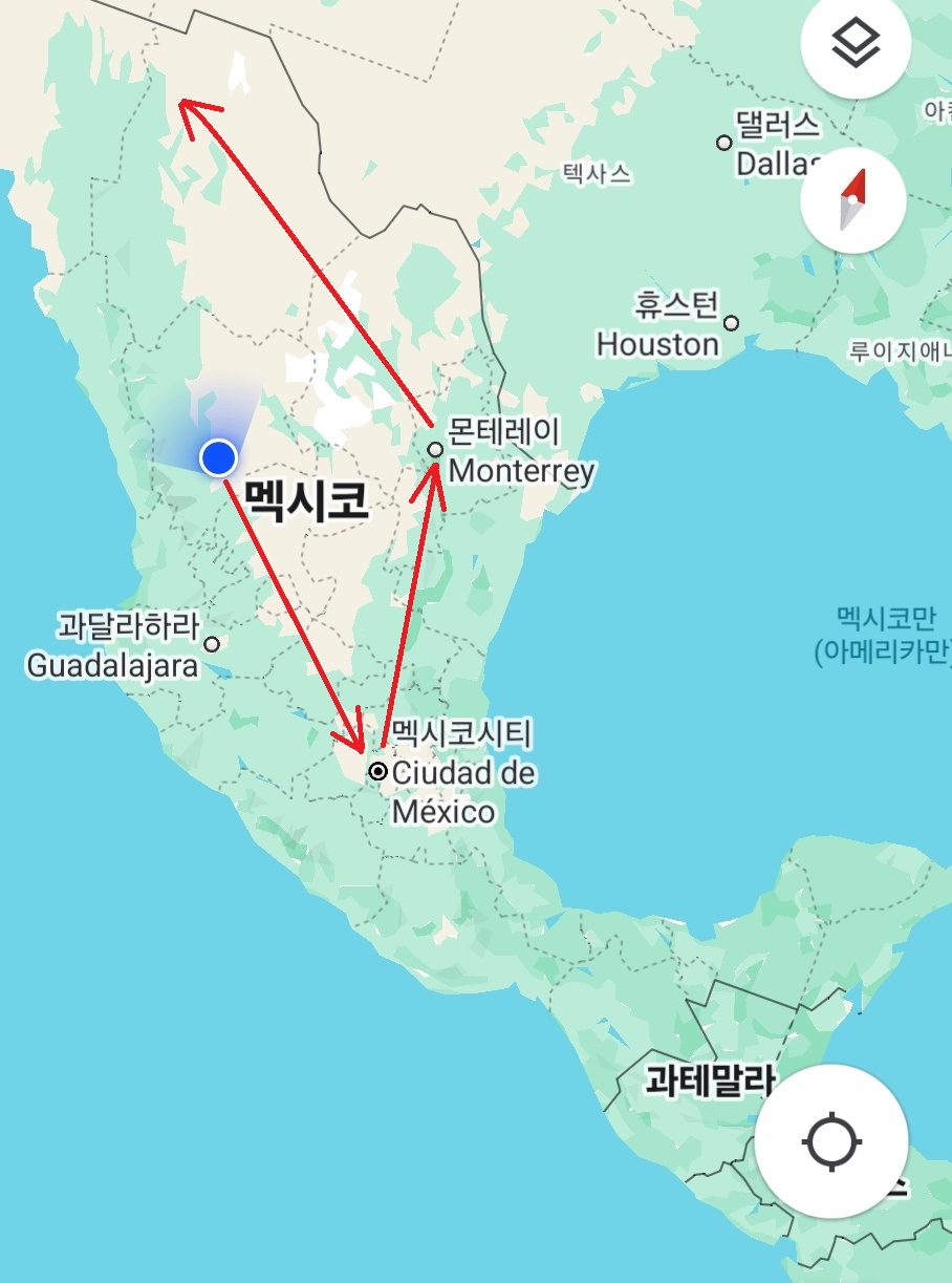 몬테레이까지 1시간 30분 비행...
