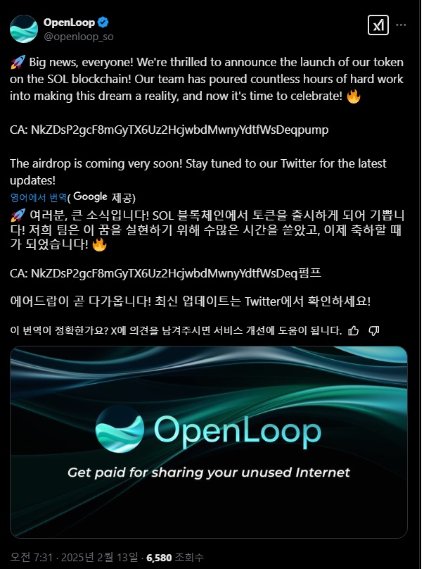 오픈루프 X 계정 털렸다네요! 토큰 출시 아니랍니다! ㅋㅋ