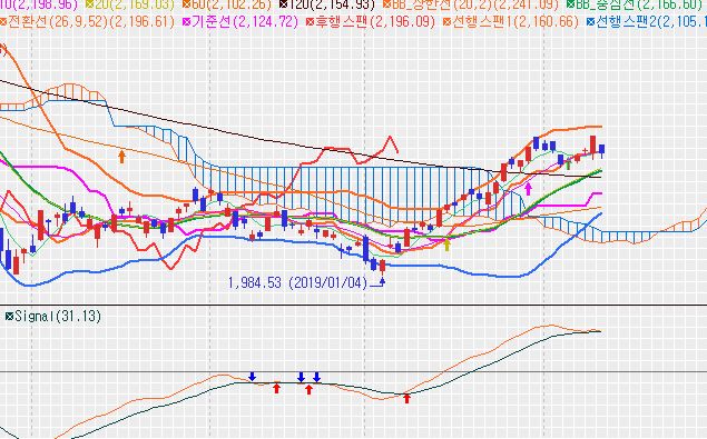 단기적으로 코스피가 흐름을 따라간다면 2280을 갈수 있느냐의 흐름으로 보입니다..단기 전고점 넘는 시도는하겠죠~
