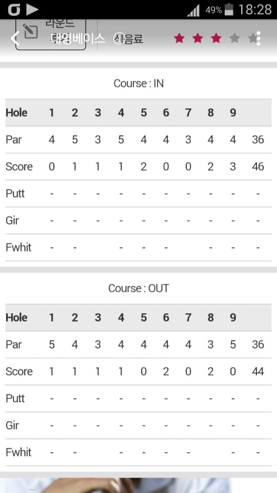 1번홀 보기, 마지막홀 더블보기..93타입니다.. 그래두 95타는 안넘겼네요~그것으로만족합니다