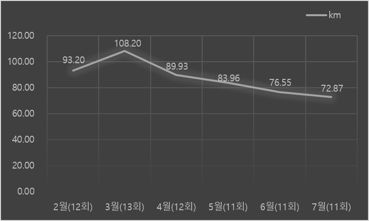 - 7월 한달, 총 11회의 달림과 포스팅이 있었습니다.