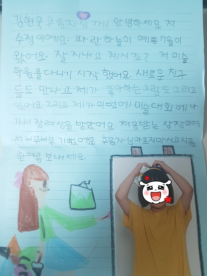 수정이 꿈이 화가라네요~ ! 누군가의 선물이 아이들에게는 희망이 될수 있다는 말이 딱 와닿는것 같아요 ^^