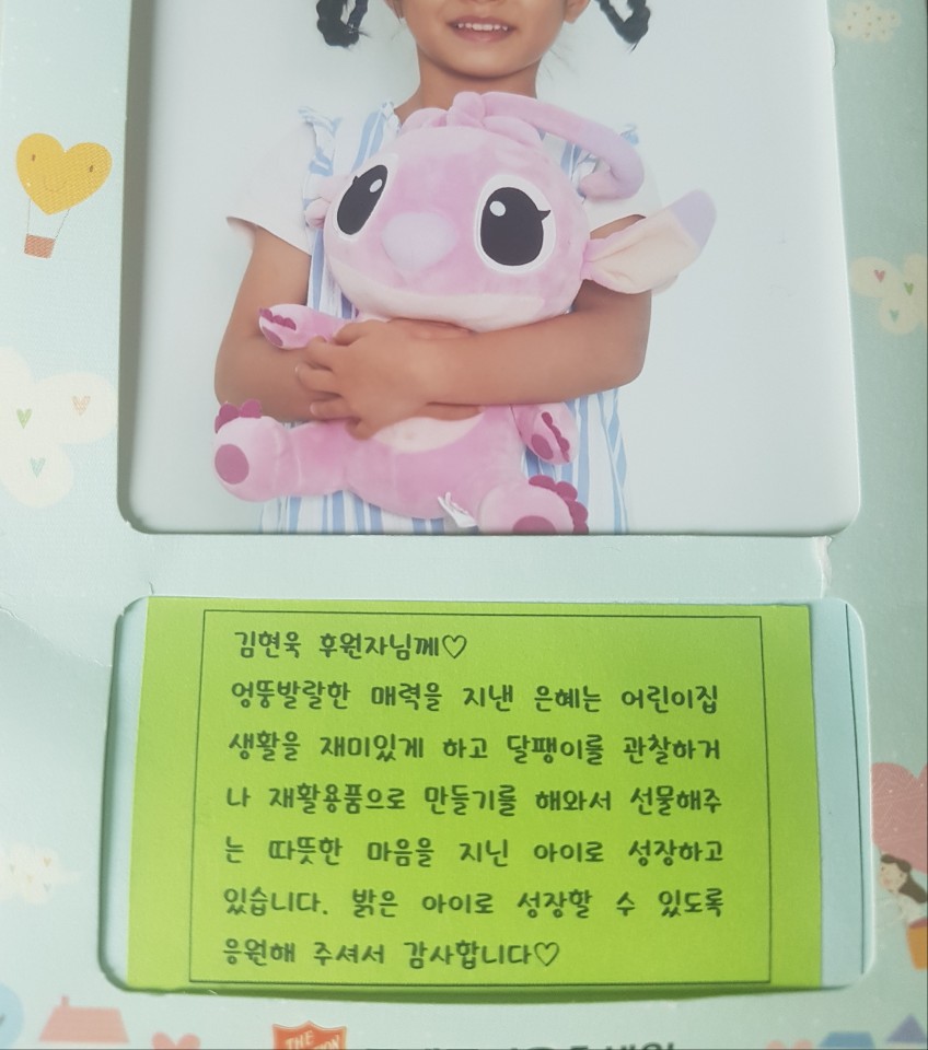 기리나님, 꾸준히 좋은 일 하시는거, 정말 존경합니다. 마음은 늘 함께 하고 픈데, 일 때문에 정신 없고 바쁘다는 핑계로, 아이들 작은 선물하나 못 챙겨주는 제가 밉네요. 조만간 기리나님께 배달 한번 더 부탁 드리겠습니다. ^^
