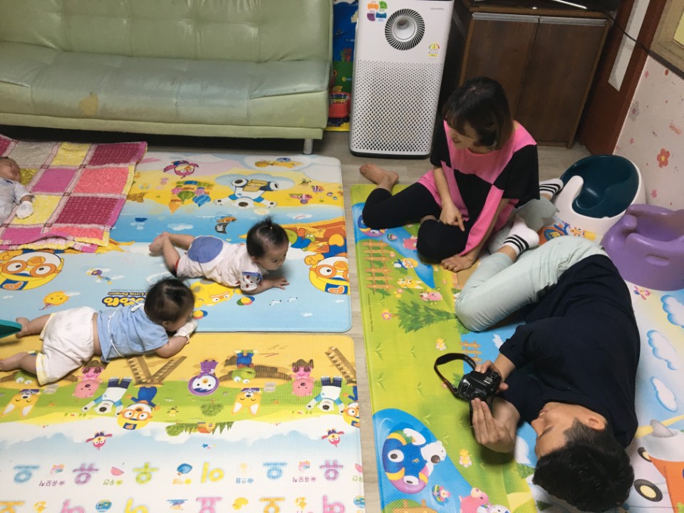 아이들이 새벽에 깨게 되면 상태 확인도 하시고 다시 재워야 하고 단체로 울게 되는 날이면 그날은 밤을 세게 된다고 하네요.