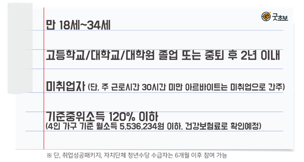 지원금은 월간 50만 원, 최대 6개월간 즉시 결제가 가능한 포인트 방식으로 지급되며 유흥, 도박 등 일부 업종이 제한되고 취업 준비에 필요한 다양한 지출에 이용할 수 있습니다.