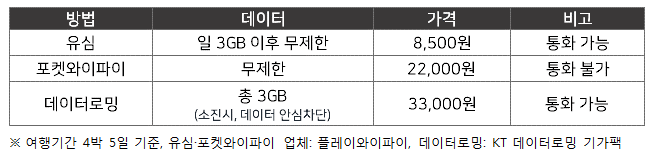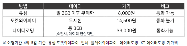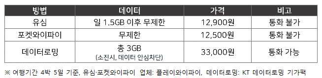 [유심], [포켓와이파이], [로밍] 을 비교해보았습니다 😁