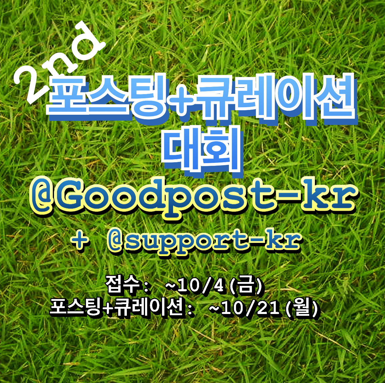 - 본 대회 참여 계정은 @goodpost-kr 계정(4만5천 스파) 매일 풀보팅해드립니다 (다음 대회까지)