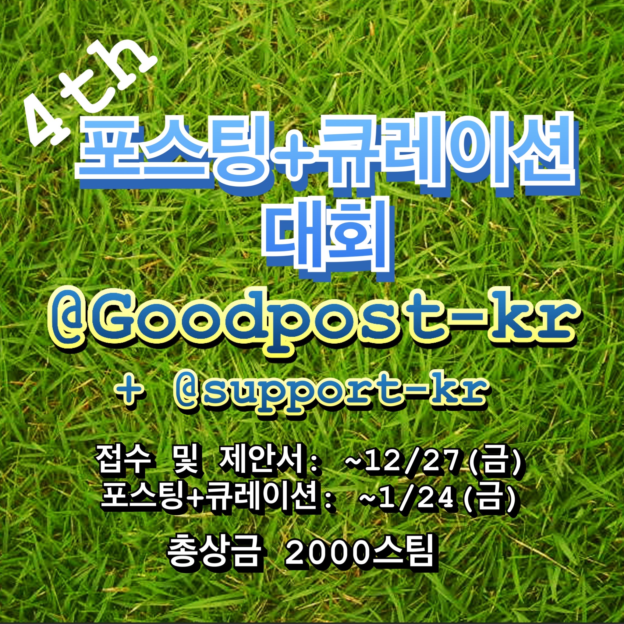 - 본 대회 참여 계정은 @goodpost-kr 계정(4만5천 스파) 매일 풀보팅해드립니다 (다음 대회까지)