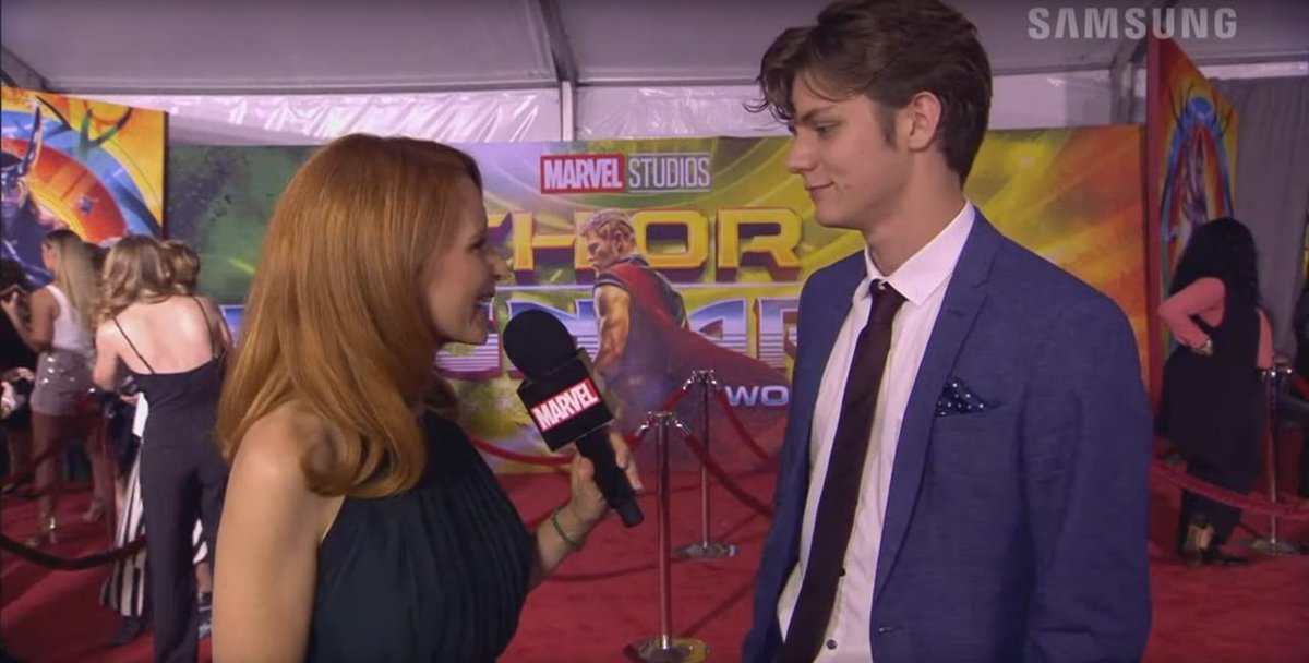 토르:라그나로크 시사회에 참석한 타이 심킨스. 이제 꼬맹이가 아니군요. 너무 잘 컸어...