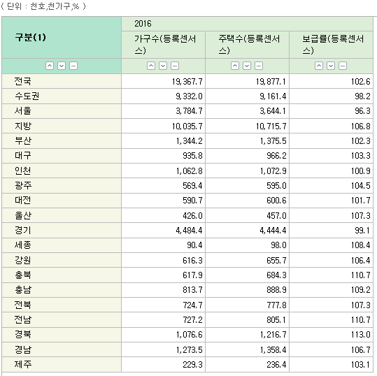 재미로 알아보는 우리나라 2016년 기준 주택보급률