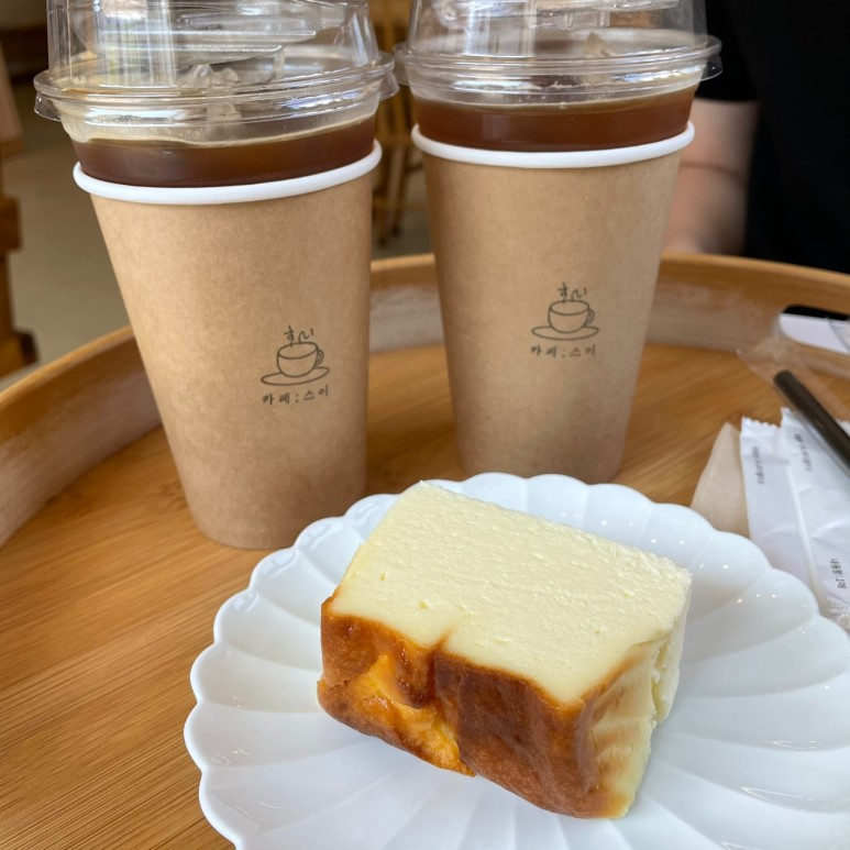 저희는 아메리카노랑 치즈케이크를 주문했답니당!