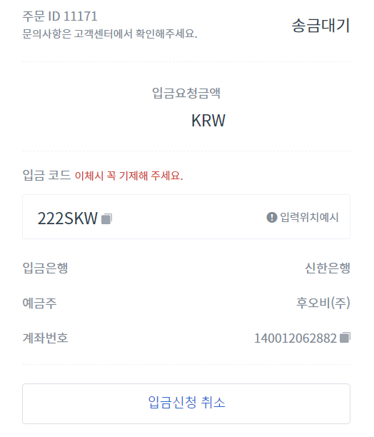원화입금 개시 소식에 살짝 들떴지만 역시나 법인계좌 입금방식이다.