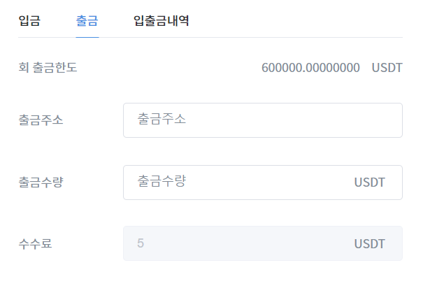 테더 출금 수수료는 5 USDT로 생각보다 높다.