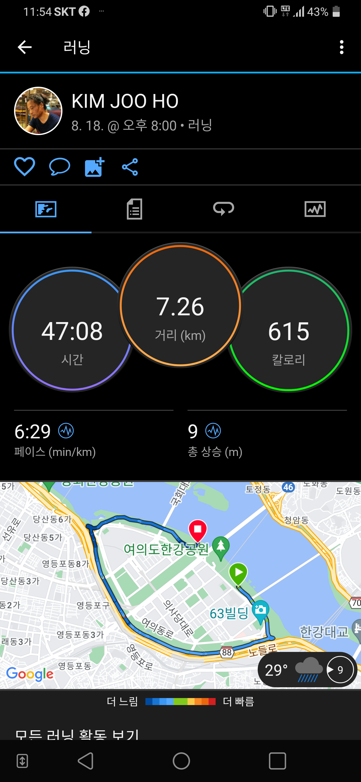 여의도 한바퀴를 돌아도 거리가 저것밖에 안되는구나