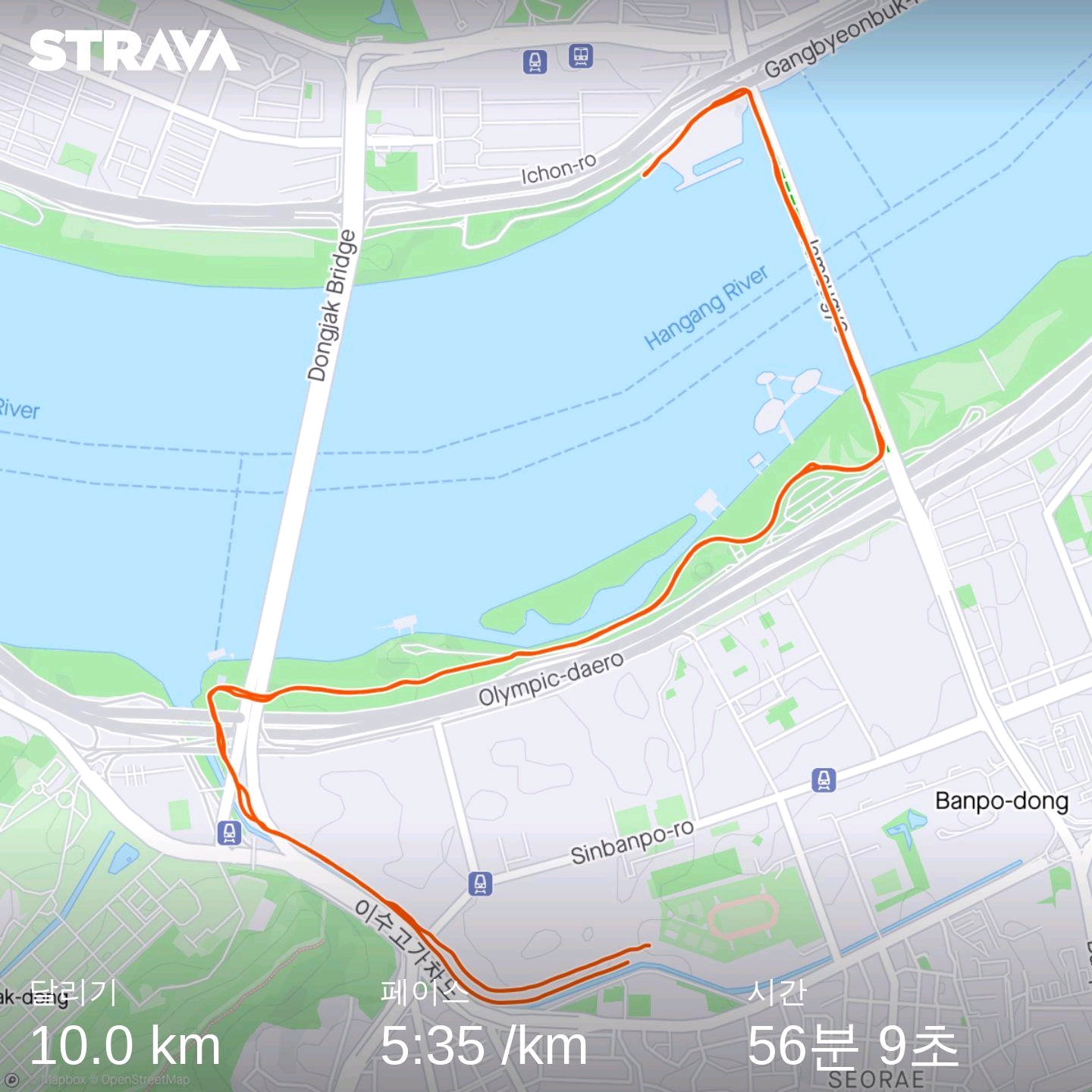 오늘 코스는 반포종합운동장에서 출발해서 잠수대교를 건너 다시 돌아오는 거였는데 잠수대교를 건너는 구간은 정말 새로웠던거 같다.