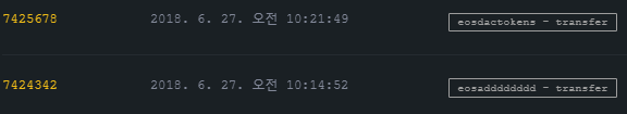 만약 토근 전송이 락(Locked)되어 있는 경우도 에러 메세지가 발생합니다. 어제까지만 해도 전송 이 안됬던 eosdactokens 도 지금 해보니 전송 됩니다.