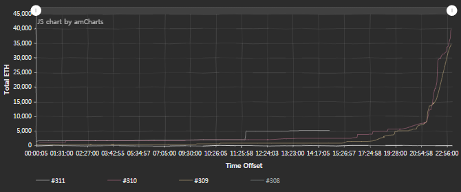 특히 최근 ICO 마감 무렵 당일 IOC 가격이 유리한 경우 Bitfinex , Binance 측의 소유로 보이는 다수의 주소로 EOSCrowdsale 주소로 직접 전송하는 경우가 많으며, 거래소(Bitfinex,Binace등)의 소유로 보이는 주소에서 참여하는 방식은 eos.io 를 이용하지 않고 직접 주소로 전송합니다.