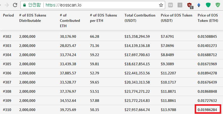 EOS ICO 가 4월25일 기준(311회차)며, 이제 앞으로 40회만 남았습니다. EOS 투자자에게 좋은 결과 있기를 기대 합니다. 안전하게 남은 기간까지 EOS 를 보유하신 분들은 잘 보관 하시기 바랍니다.
