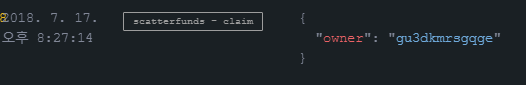 요청은 scatterfunds 계정의 Claim 컨트랙트를 실행할 때 변수로 참여한 계정명을 입력하면 요청이 완료 됩니다.