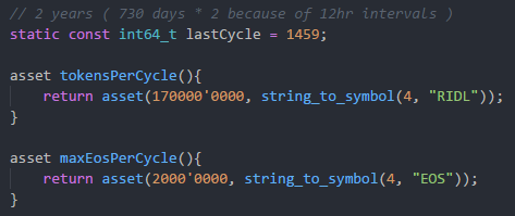 1 사이클(회)때 총 펀딩 EOS 량은 624.9781 이었으므로 1 EOS 를 참여했다면 272.0095 RIDL 를 분배 받게 됩니다.