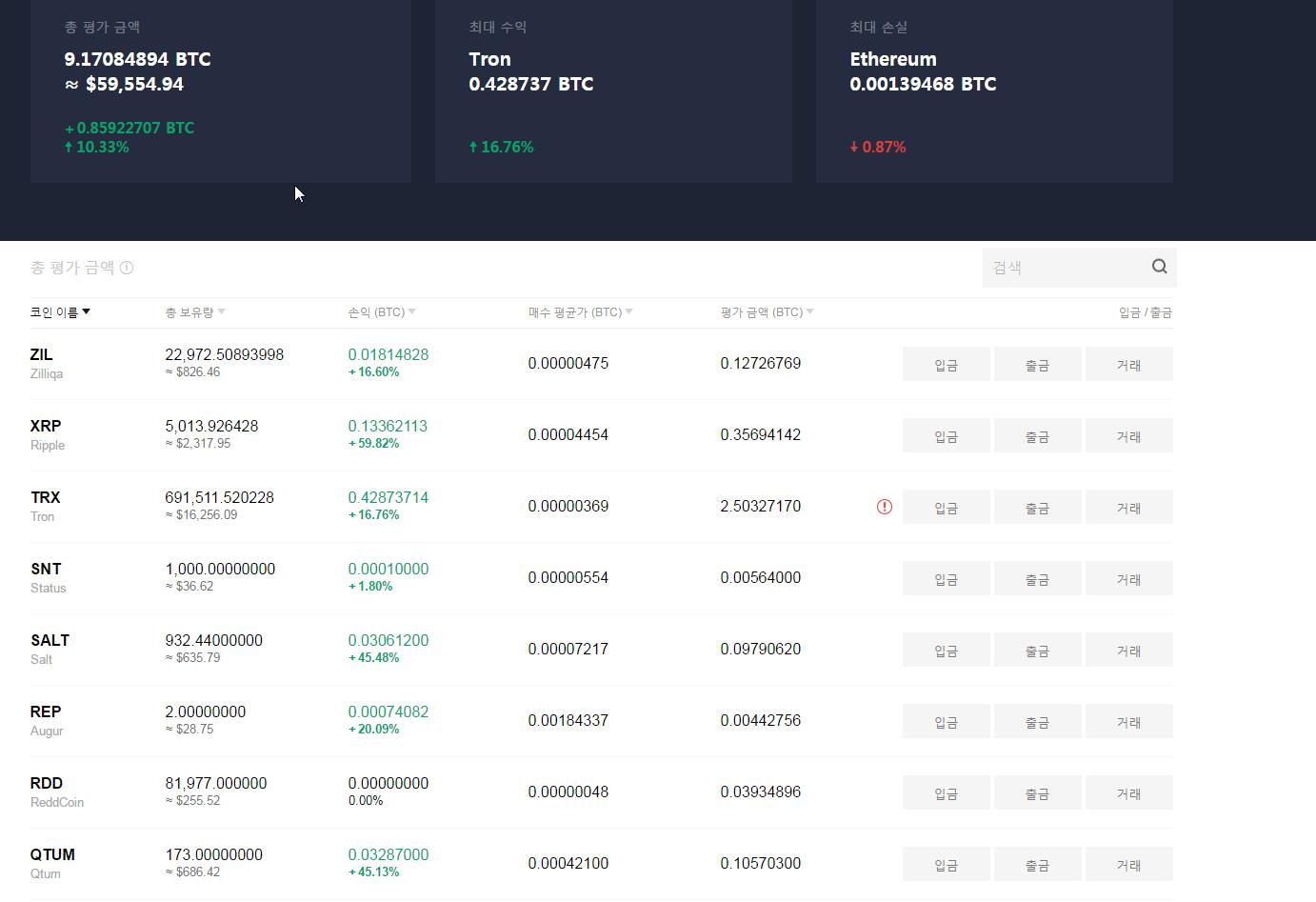 2018-09-04 12:01:20부터 한 암호화폐 거래소에서 거래를 시작하여 9.17280722 BTC로 현 시가로 $59,567.65 (6796만 7789.05 원)정도로 만들어놨다.