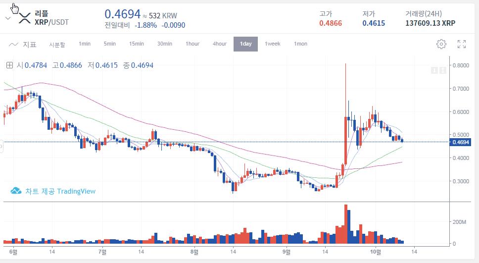 최근 리플이 클린턴 전 대통령이 참석한 발표회 스웰등 여러 호재를 쏟아내면서 잠깐 반등을 시도했다. 2년여 리플을 관찰했는데 리플은 끊임없이 호재 기사거리를 쏟아낸다. 언론플레이건 실제 은행과 매일 협력을 맺는 것은 자명하다. 리또속이라는 리플 가격에 또 속았다는 유행어도 있지만 아무튼 브랜드 협업 관리를 잘해서 최근 드물게 상승세를 타고 있다.