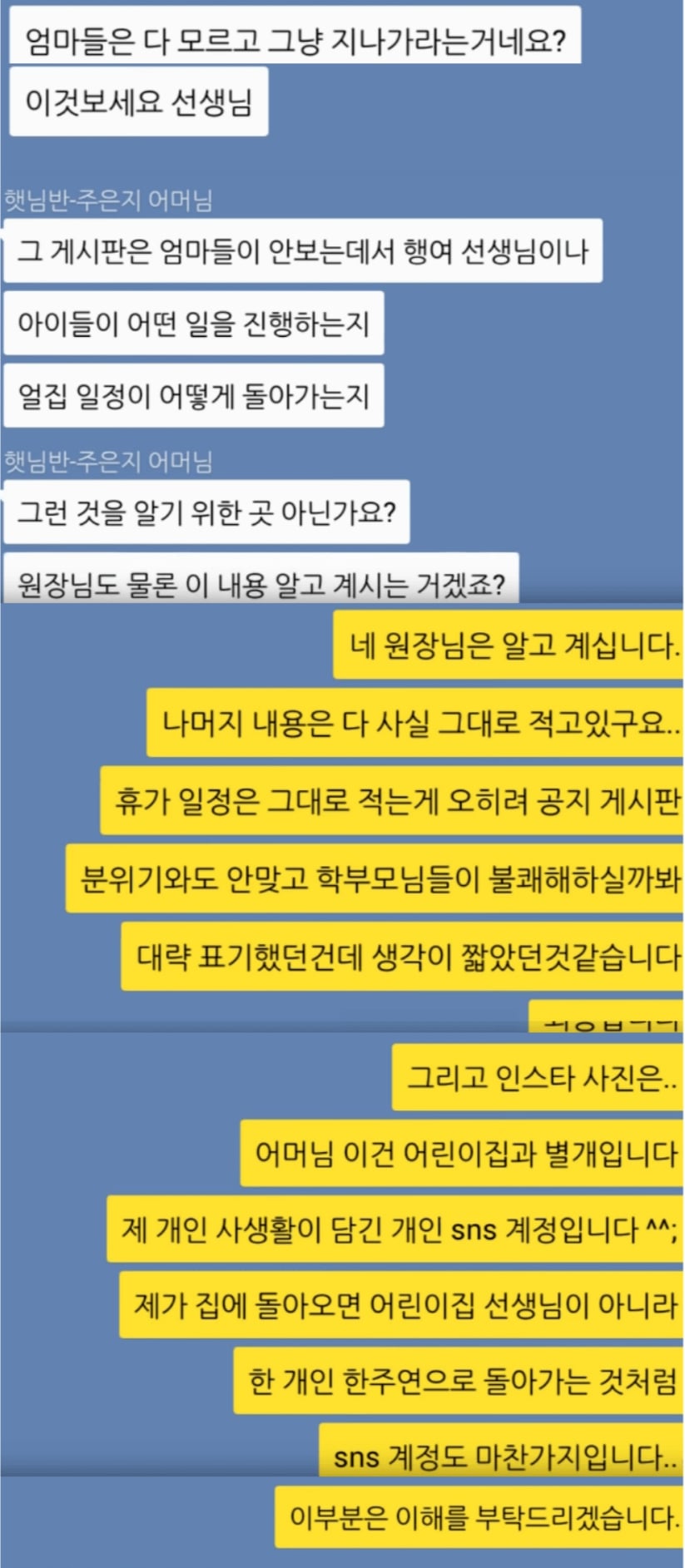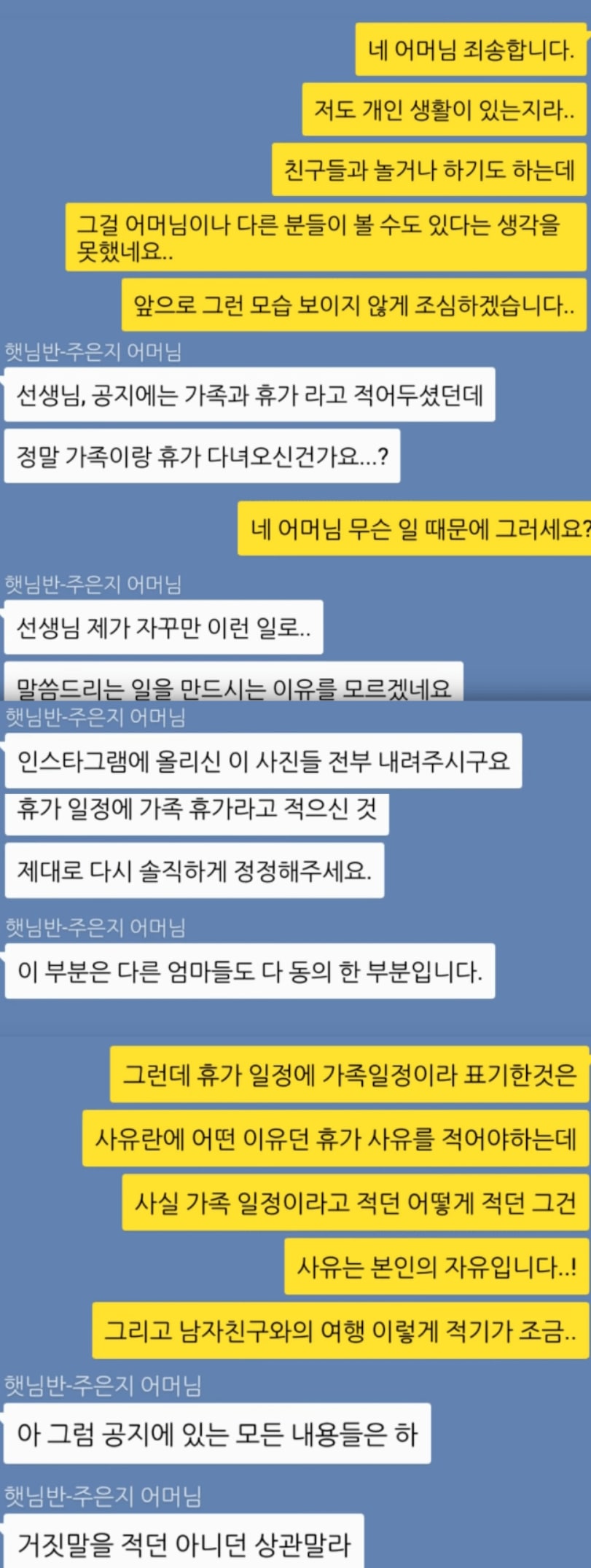 유치원 선생님도 개인 생활이 있을텐데요..