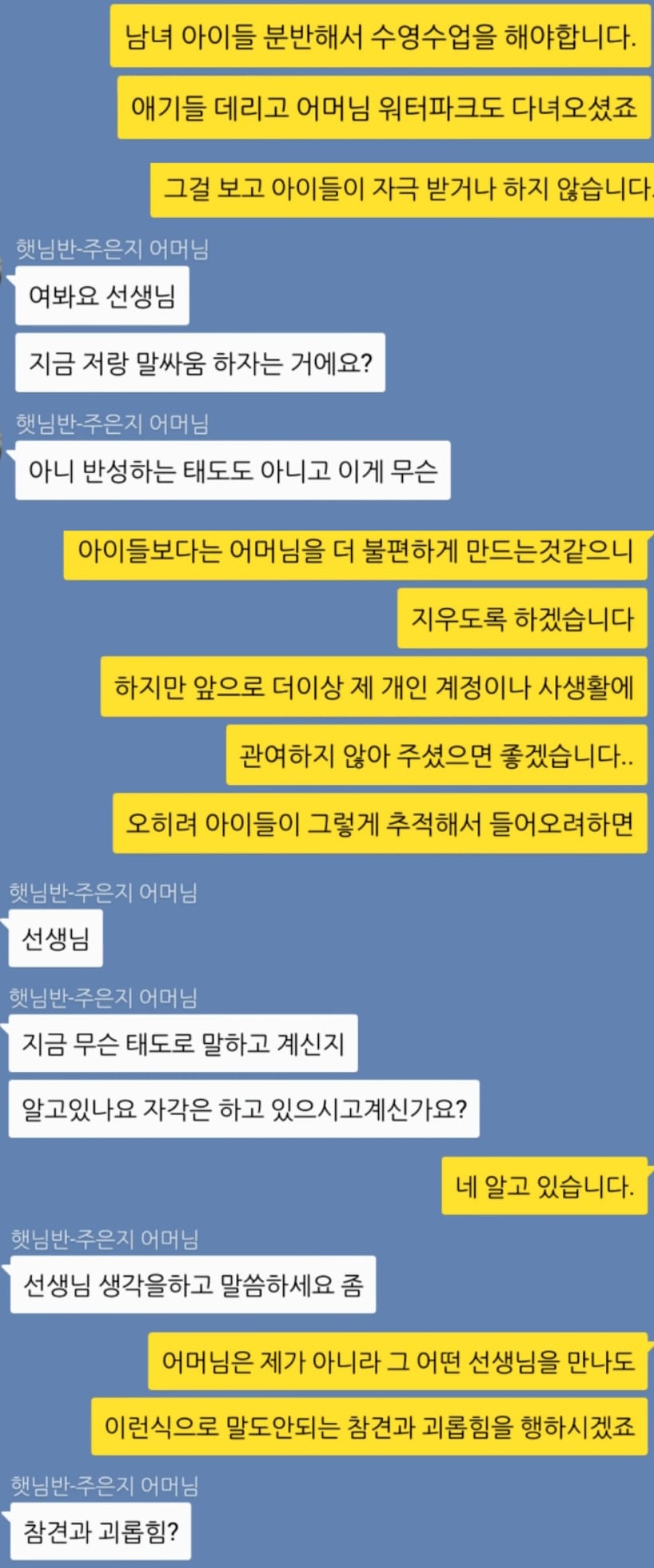 저런 사람은 상대할 필요도 없는데 저렇게 상대해준 선생님이 참 착한거죠.