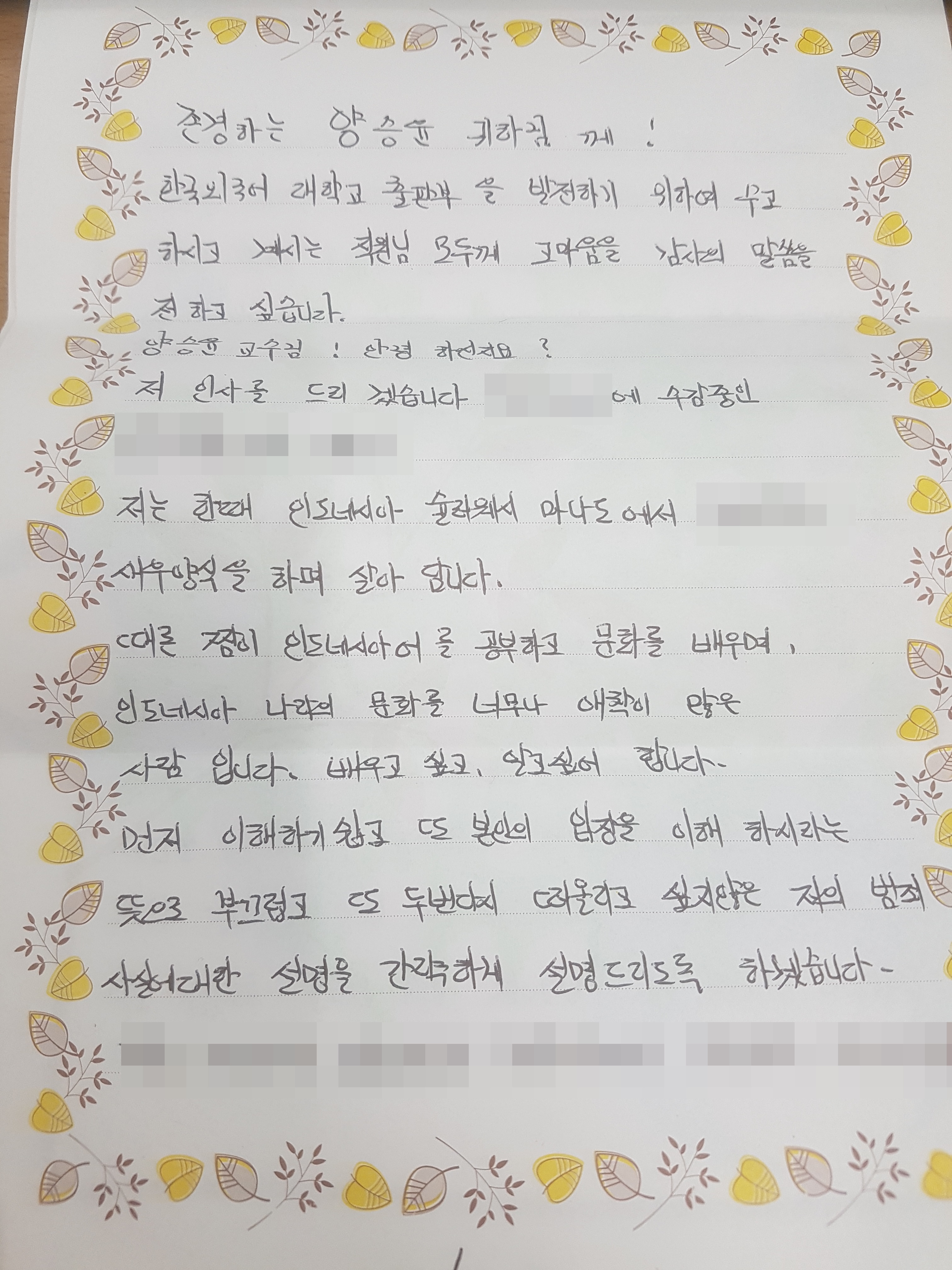 편지의 내용은 대략 이렇습니다.