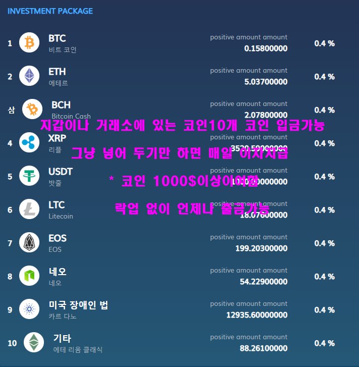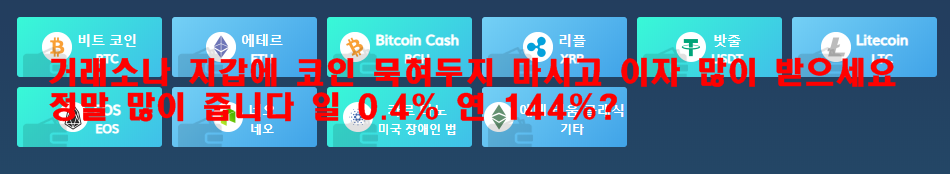 이자 지급은 비트코인으로 입금하면 비트코인으로 이자지급 .리플은 리플로 10여개 코인 입금이