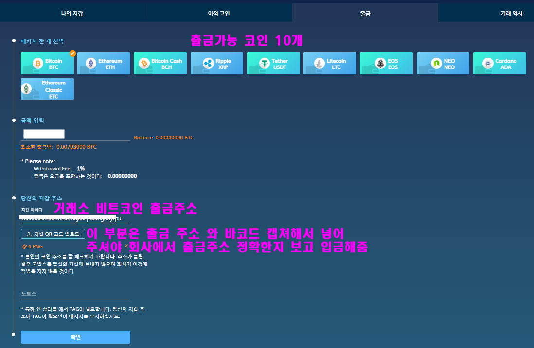 *위 노트스에는 거래소에서 코인 보내고 트렌젝션 복사해서 넣어주세요