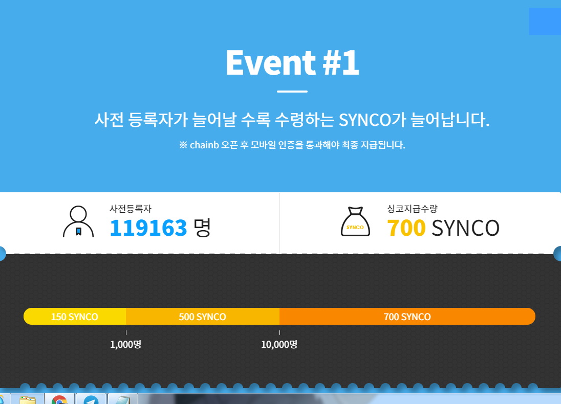 체인비거래소 사전예약10월25일마감~!!! 거래소코인인 700SYNCO코인지급~!! 오픈 곧합니다 ^^