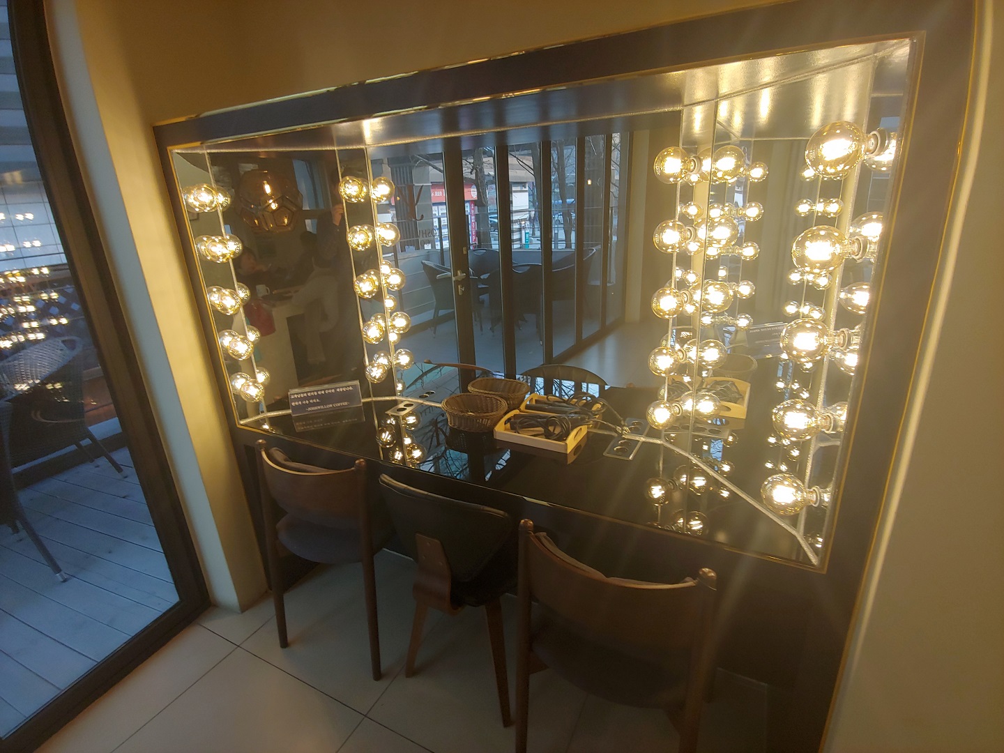 화장실 앞에 있던 옷 매무새를 다듬을 수 있는 용도 추정되는 거울이 있었습니다 ㅋㅋ