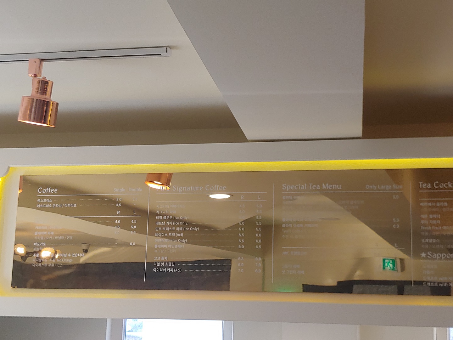 가격은 사진에는 잘 안보이지만 그냥 여느 프랜차이즈 카페 정도의 가격입니다.