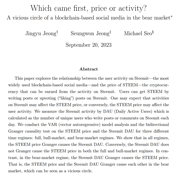 [23.10.16]스팀잇 논문 : 가격이 먼저냐, 활동량이 먼저냐?