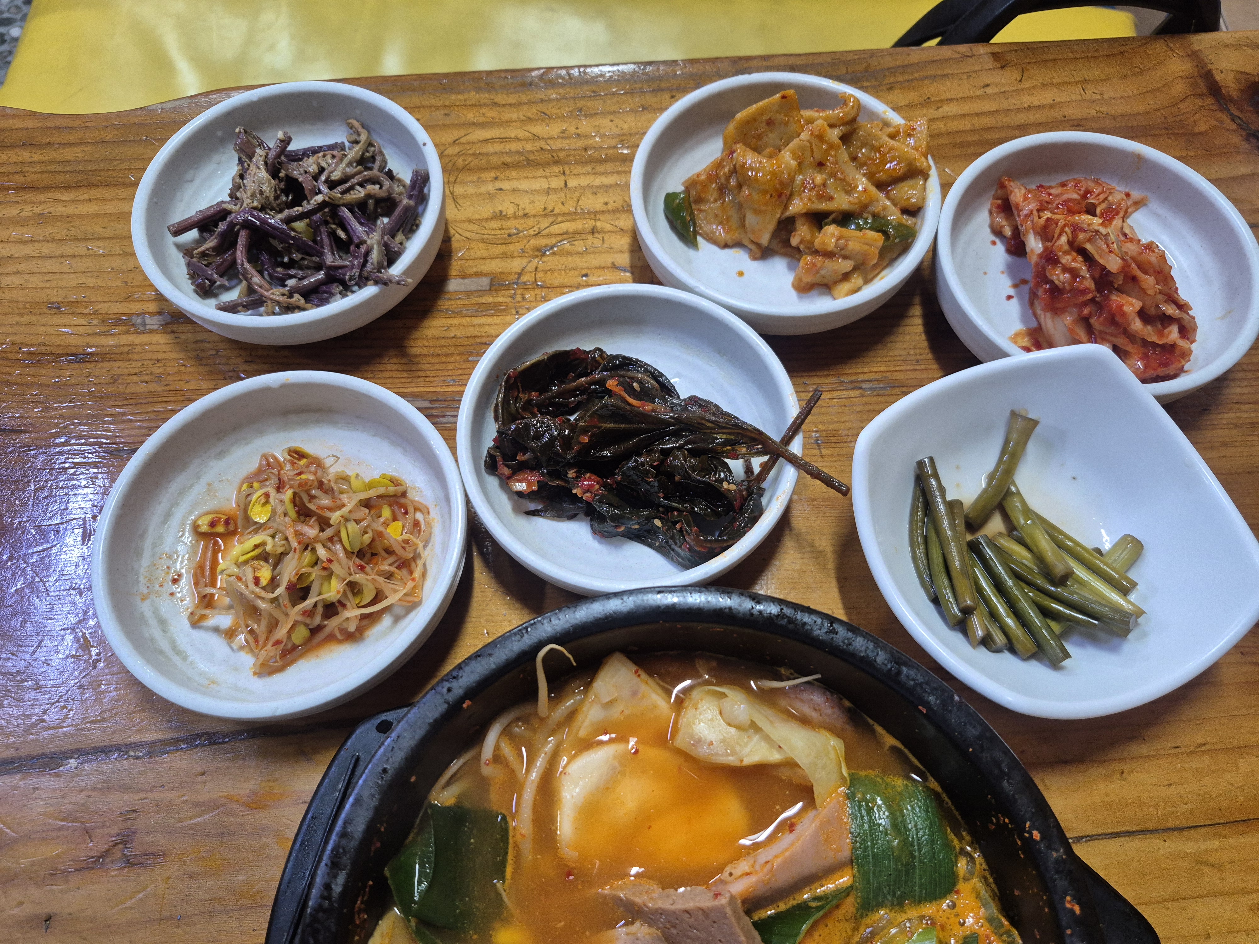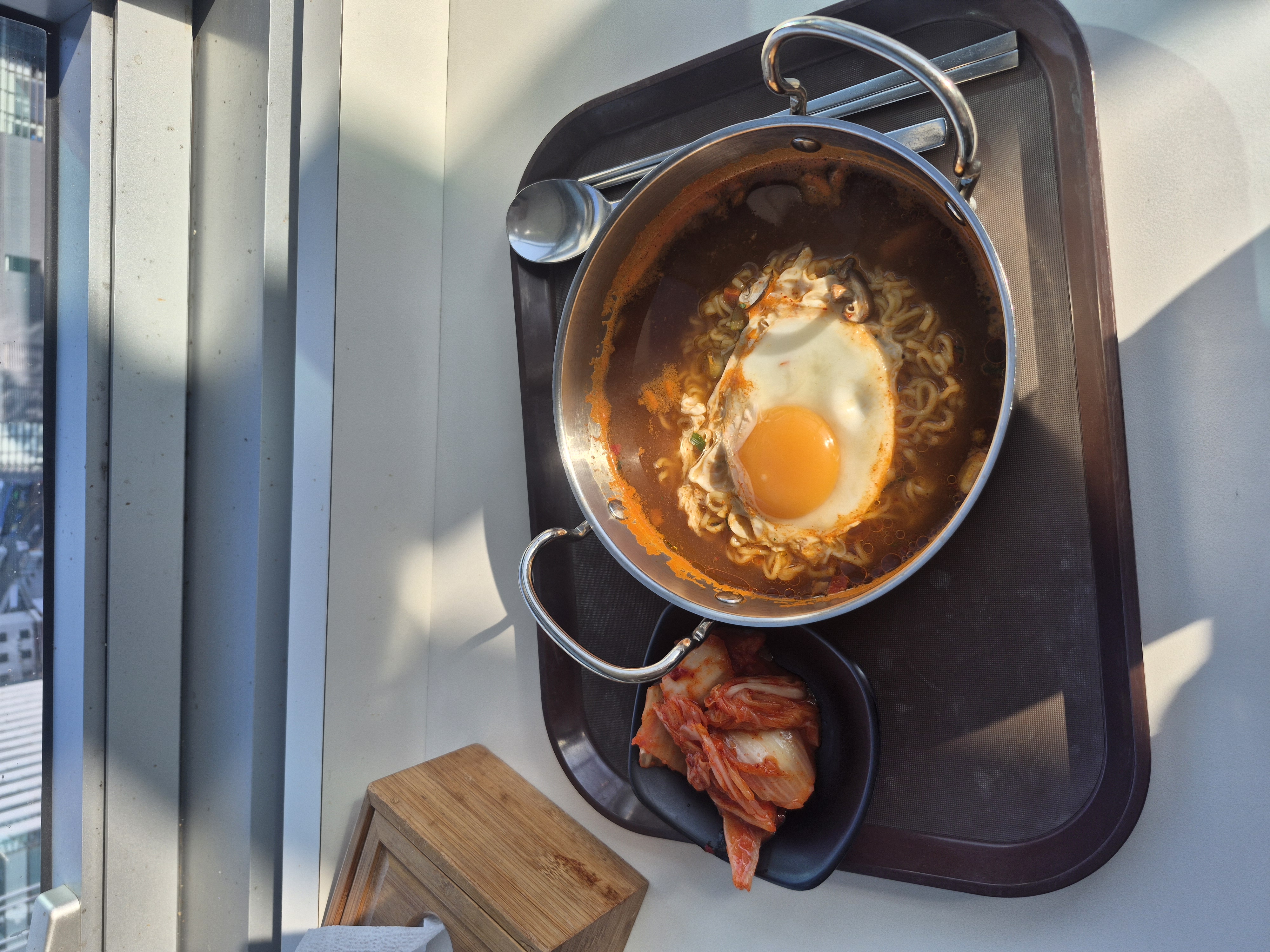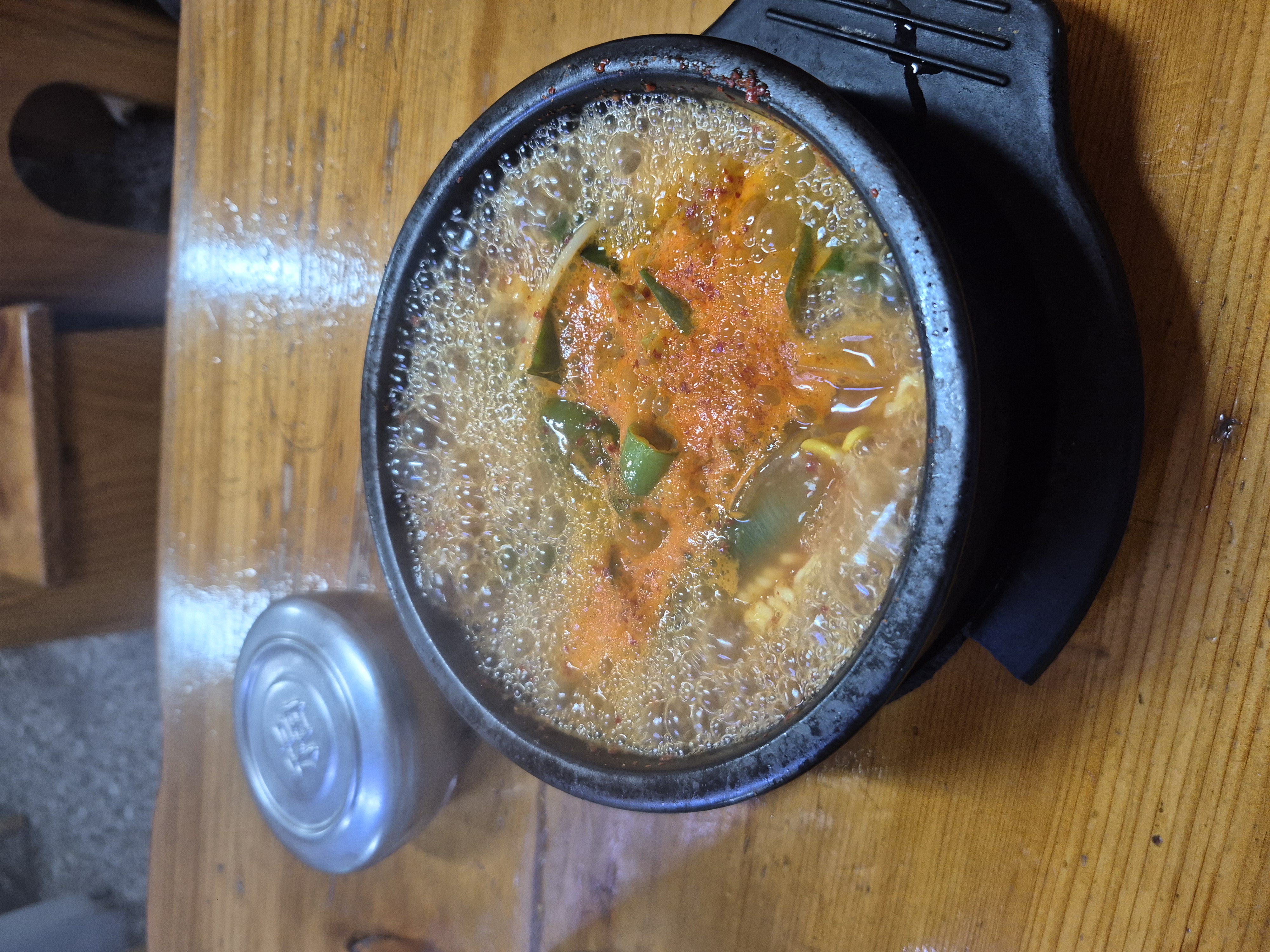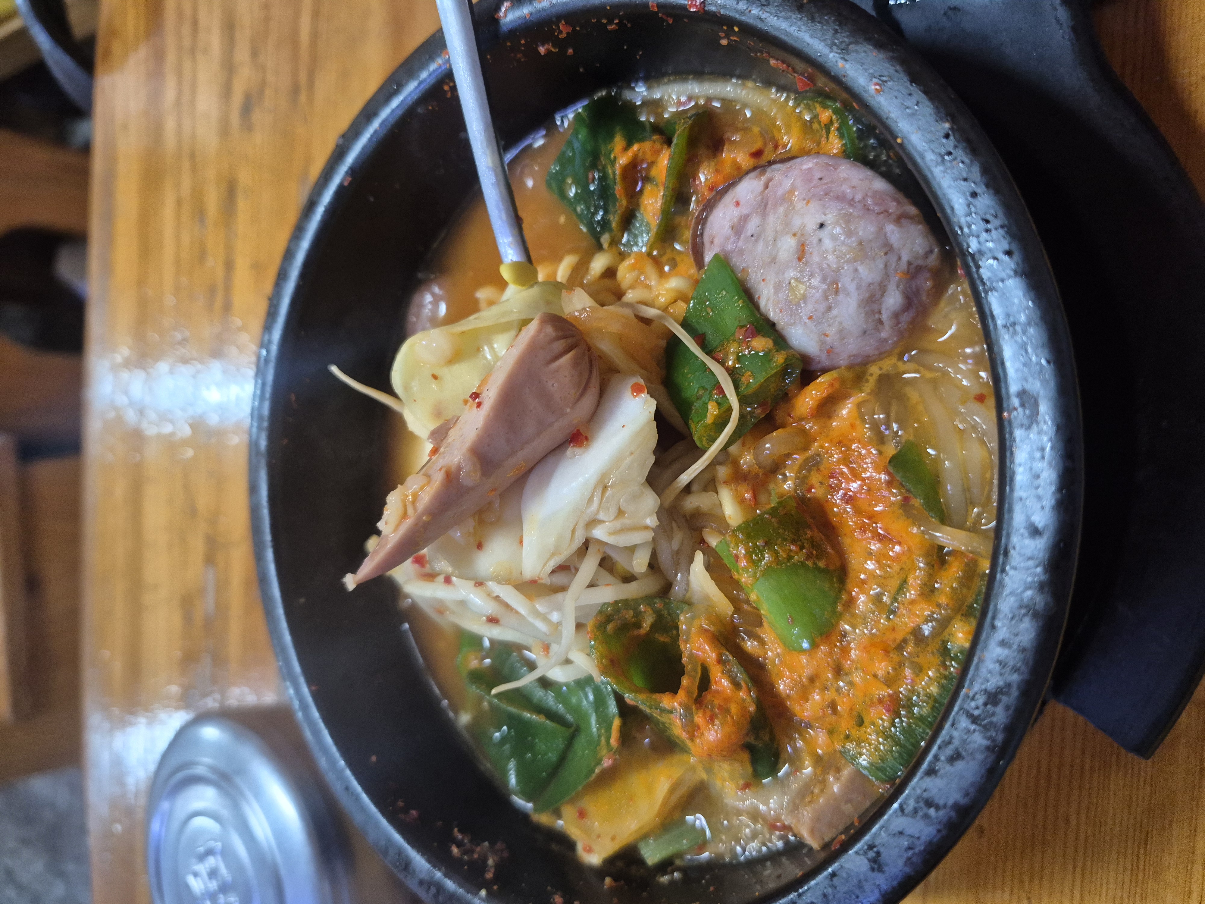 뚝배기에 부대찌개가 먼저 나왔습니다