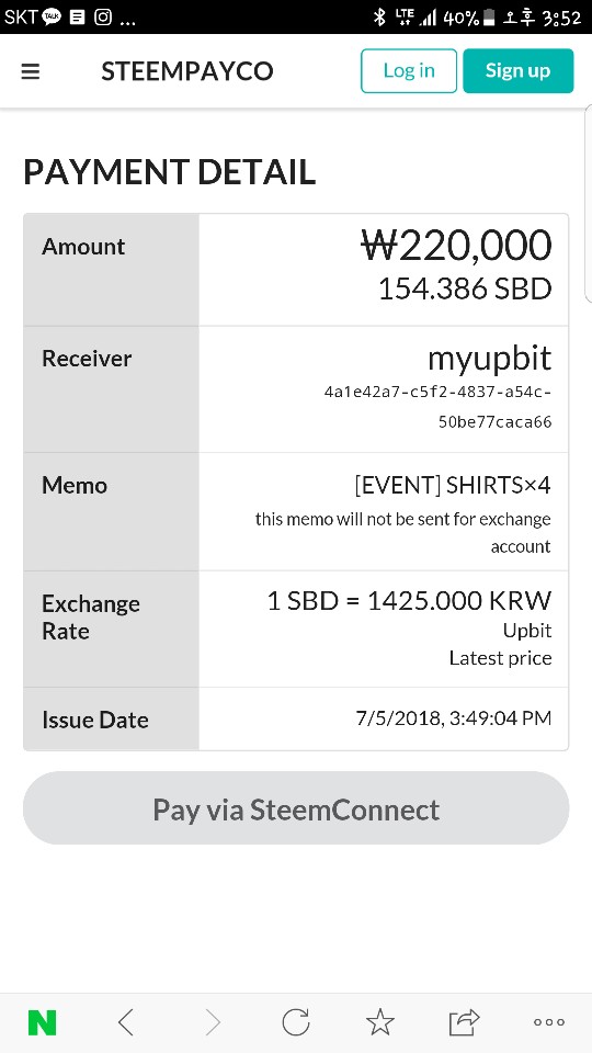 그런 다음 이렇게 아래의 pay via steemconnect버튼을 클릭하면 제 스팀잇 아이디와 프라이빗 키를 입력하는 창이 나옵니다.
