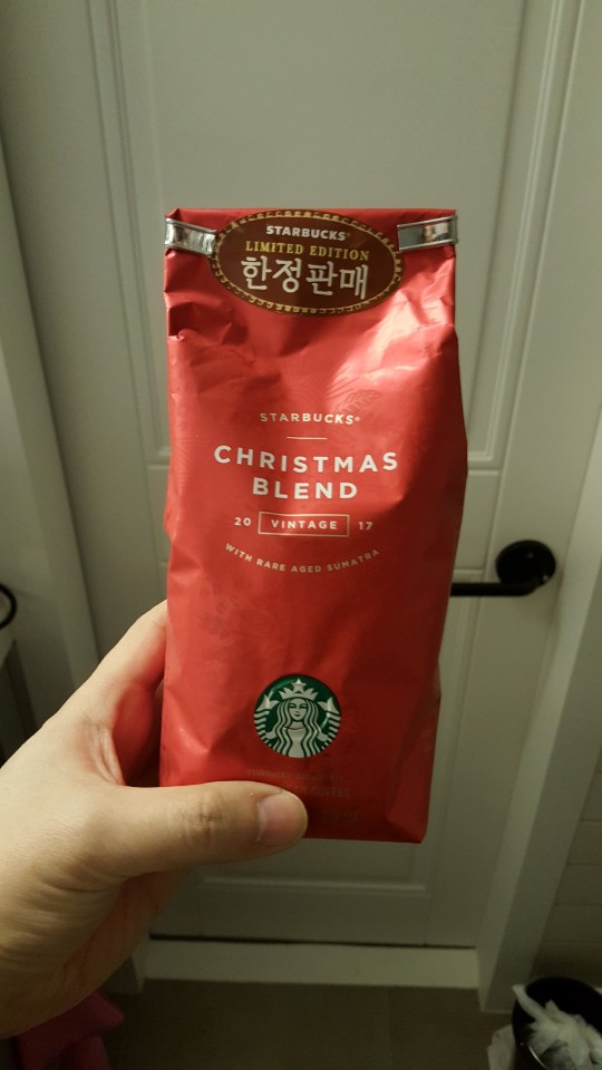 얼른 이번 크리스마스때 구입한 스타벅스 크리스마스 블랜드로 한번 갈아봤지요.
