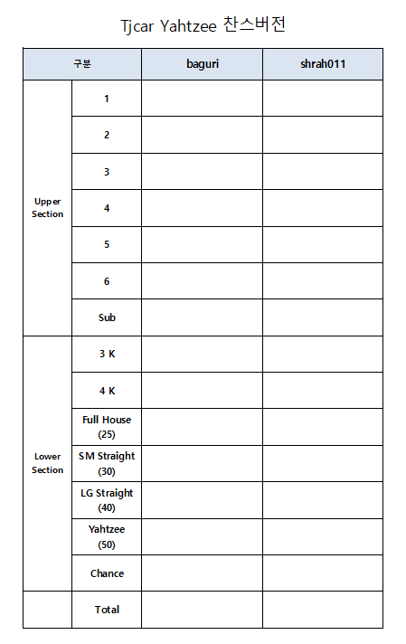 [Tjcar 야찌 찬스전 4월 리그 ] 찬스 등록 및 1라운드 주사위를 던져주세요.