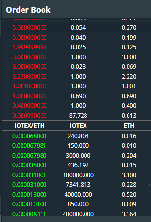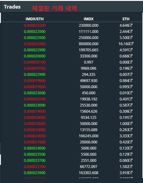 빨간색은 매도할 수량과 가격 - 초록색은 매수할 수량과 가격 입니다.